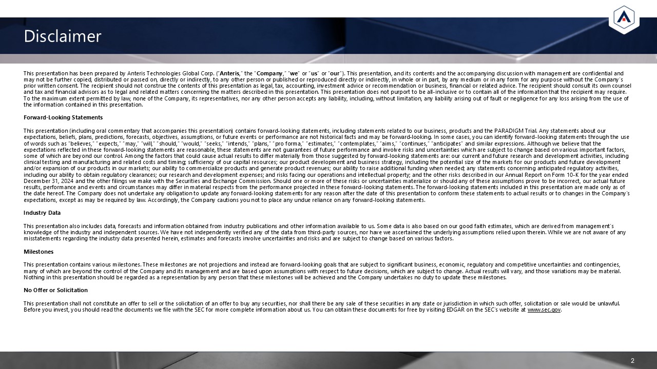 Report on Form 10-K for the fiscal period ended December 31, 2024 that was filed with the Securities and Exchange Commission. Readers are cautioned not to put undue reliance on forward-looking statements, and except as required by law, Anteris does