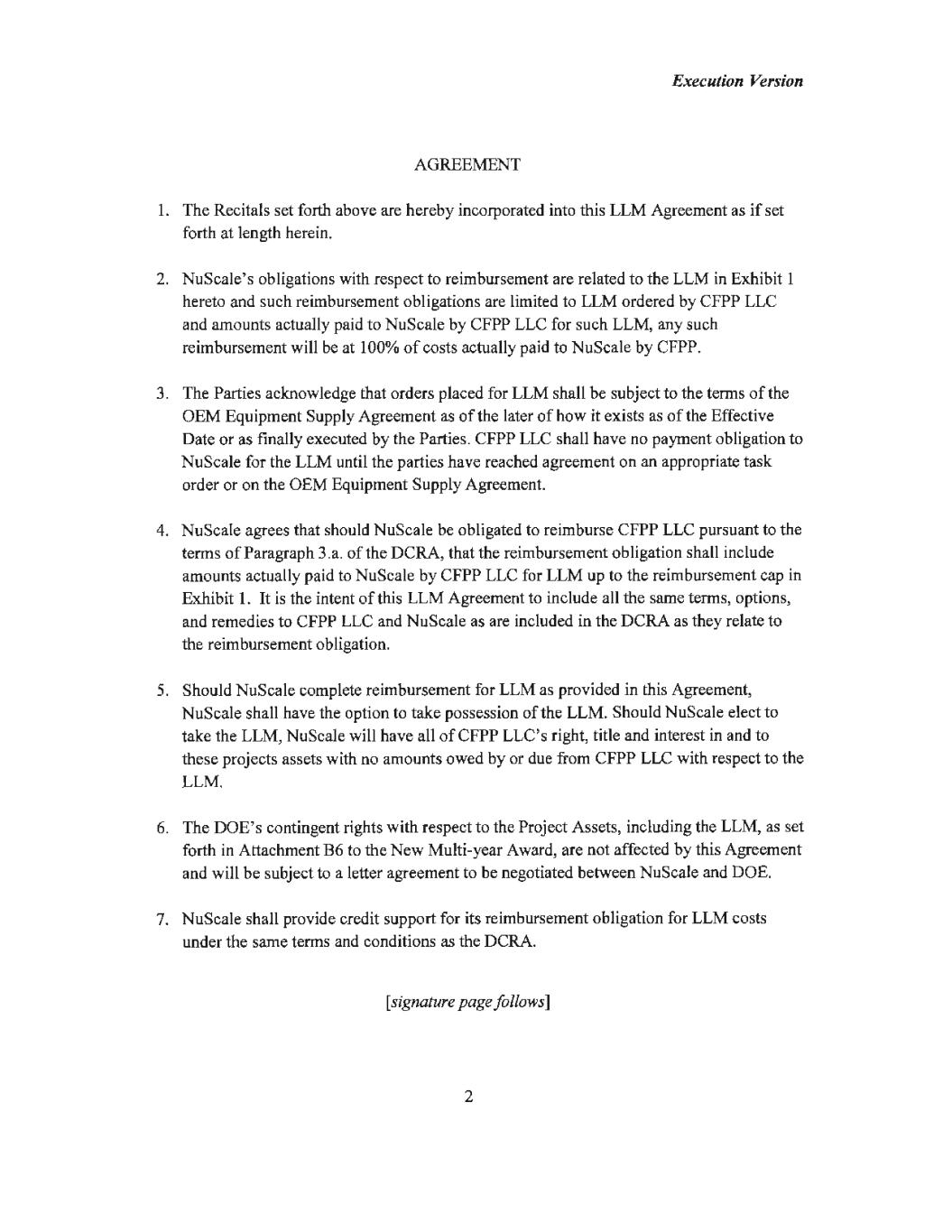 In conjunction with DOE Office of Nuclear Energy Award DE-NE0008935 with Utah Associated Municipal Power Systems’ (“UAMPS”) wholly owned subsidiary, Carbon Free Power Project, LLC (“CFPP LLC”), we entered into a DCRA, pursuant to which we are developing the NRC license application and performing other site licensing and development activities. Under the DCRA, we may be obligated to refund to UAMPS a percentage of its net development costs up to a specified cap, which varies based on the stage of project development, if certain performance criteria are not met. As of March 7, 2023, when we entered into Amendment 3 of the DCRA and the Long Lead Material Reimbursement Agreement with CFPP LLC, the maximum reimbursement based on the current stage of project development is $81,000. As of December 31, 2022 the net development costs incurred by UAMPS totaled $17,834.