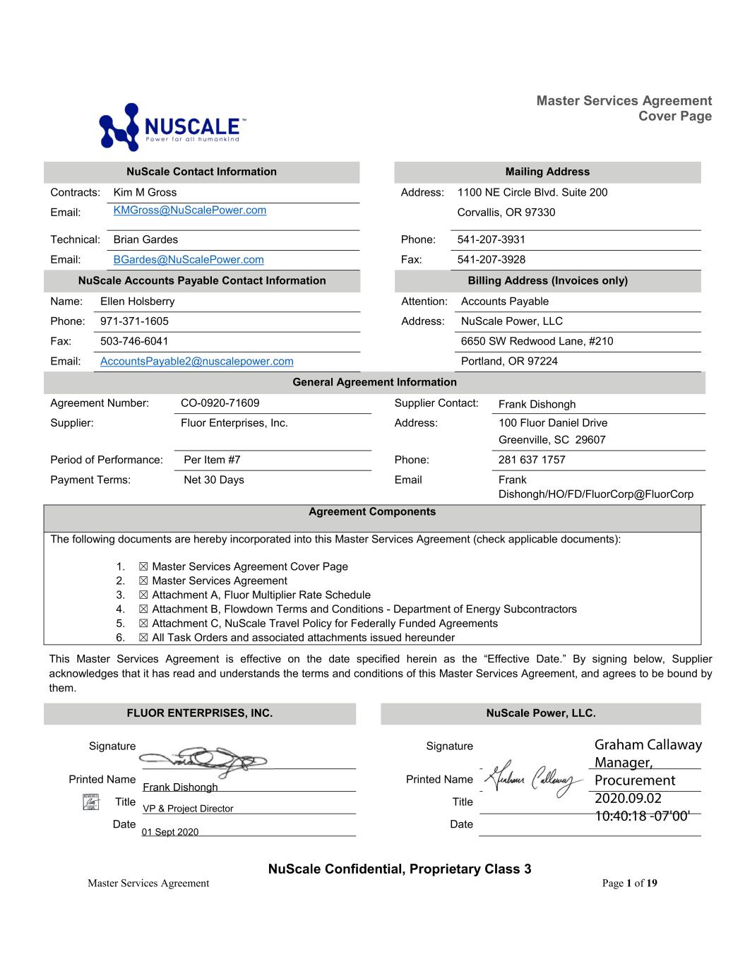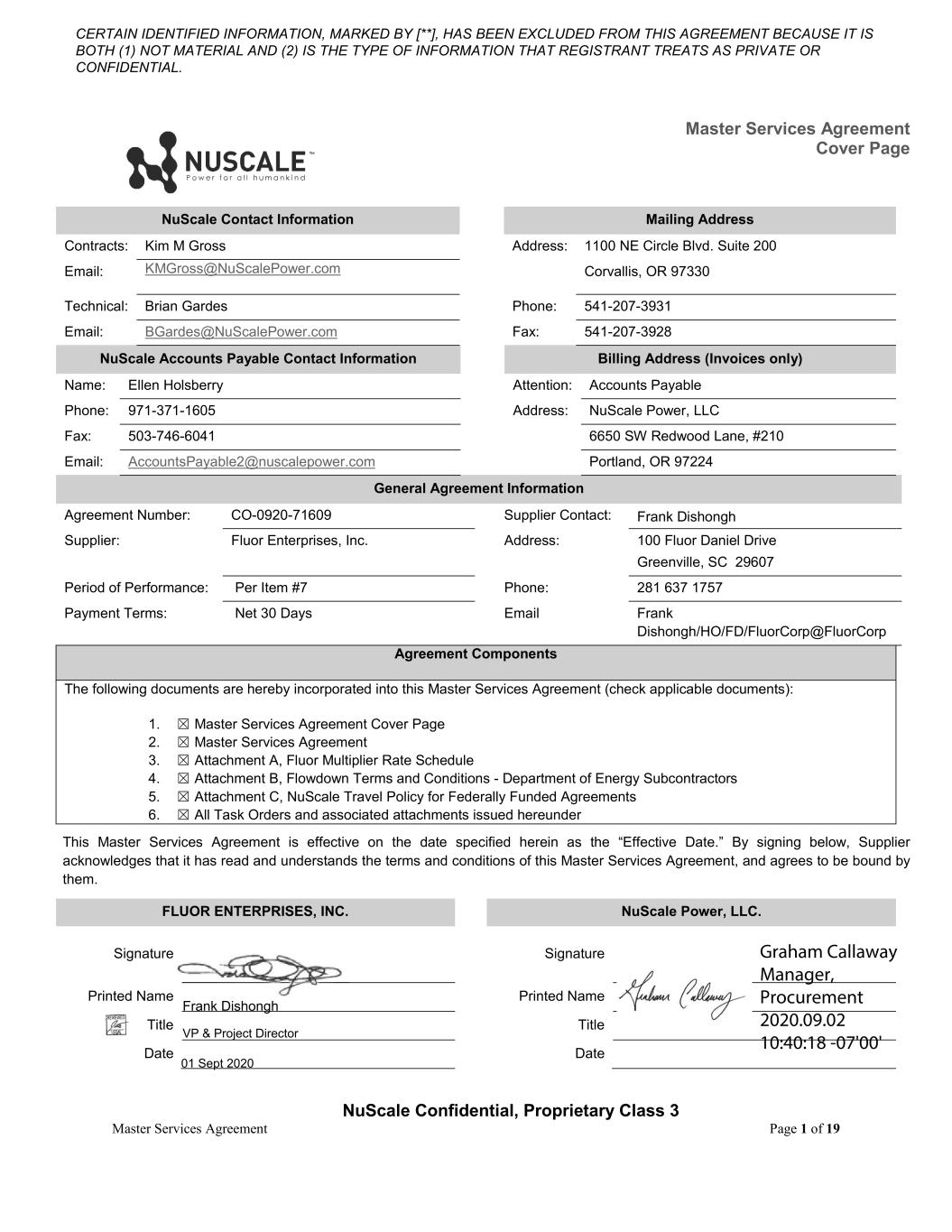 • “Fluor” refers to Fluor Enterprises, Inc., a California corporation, which is wholly owned by Fluor
