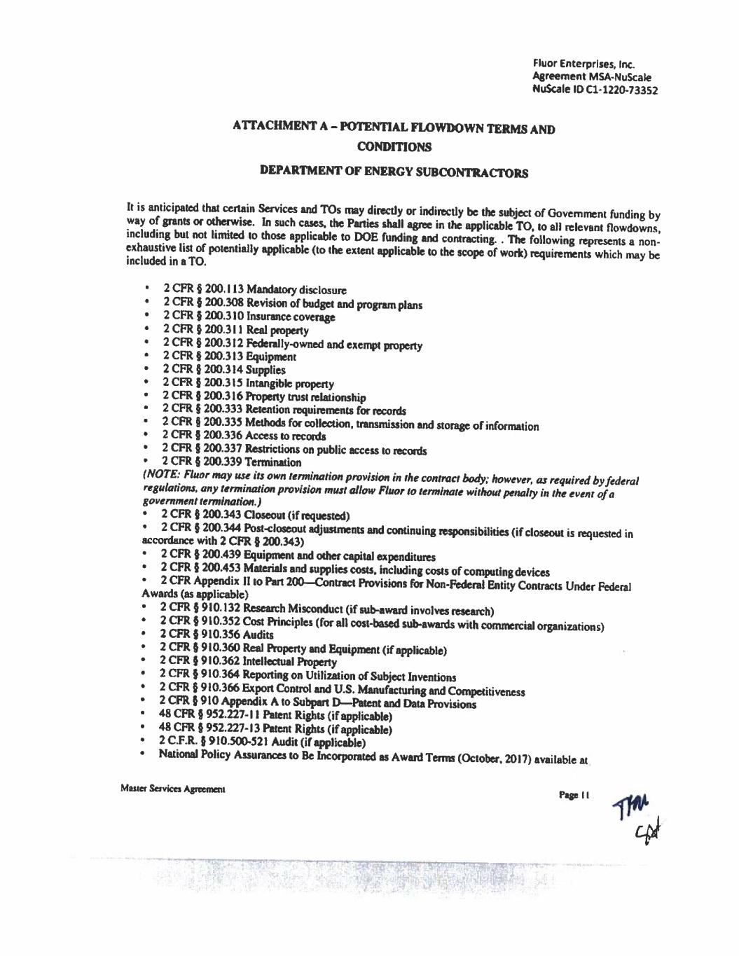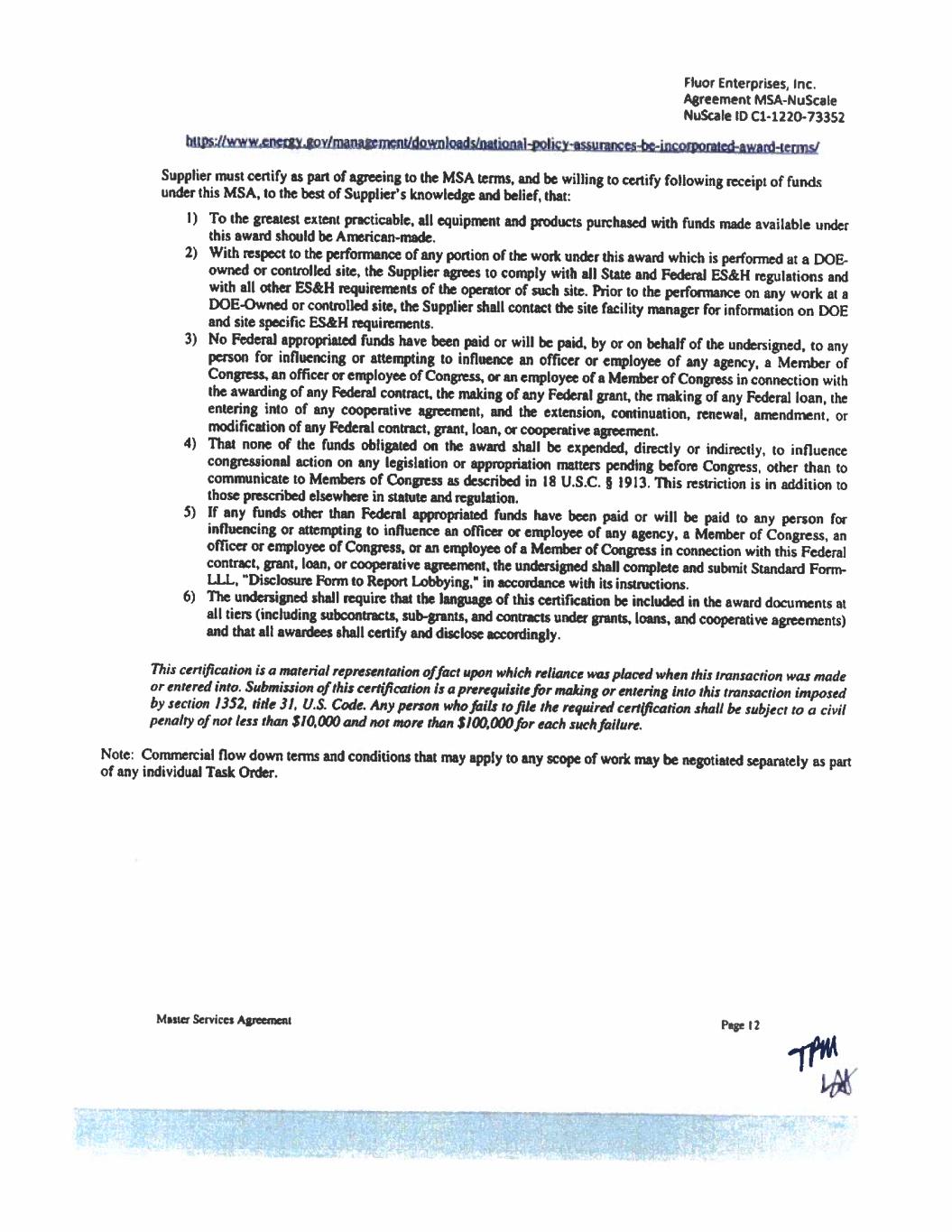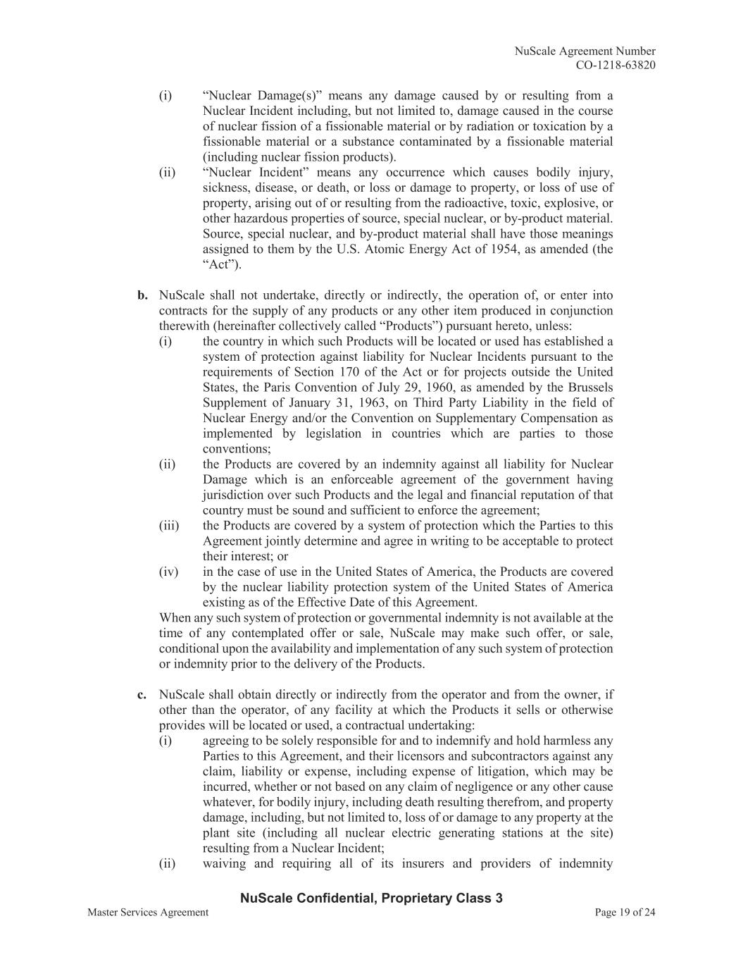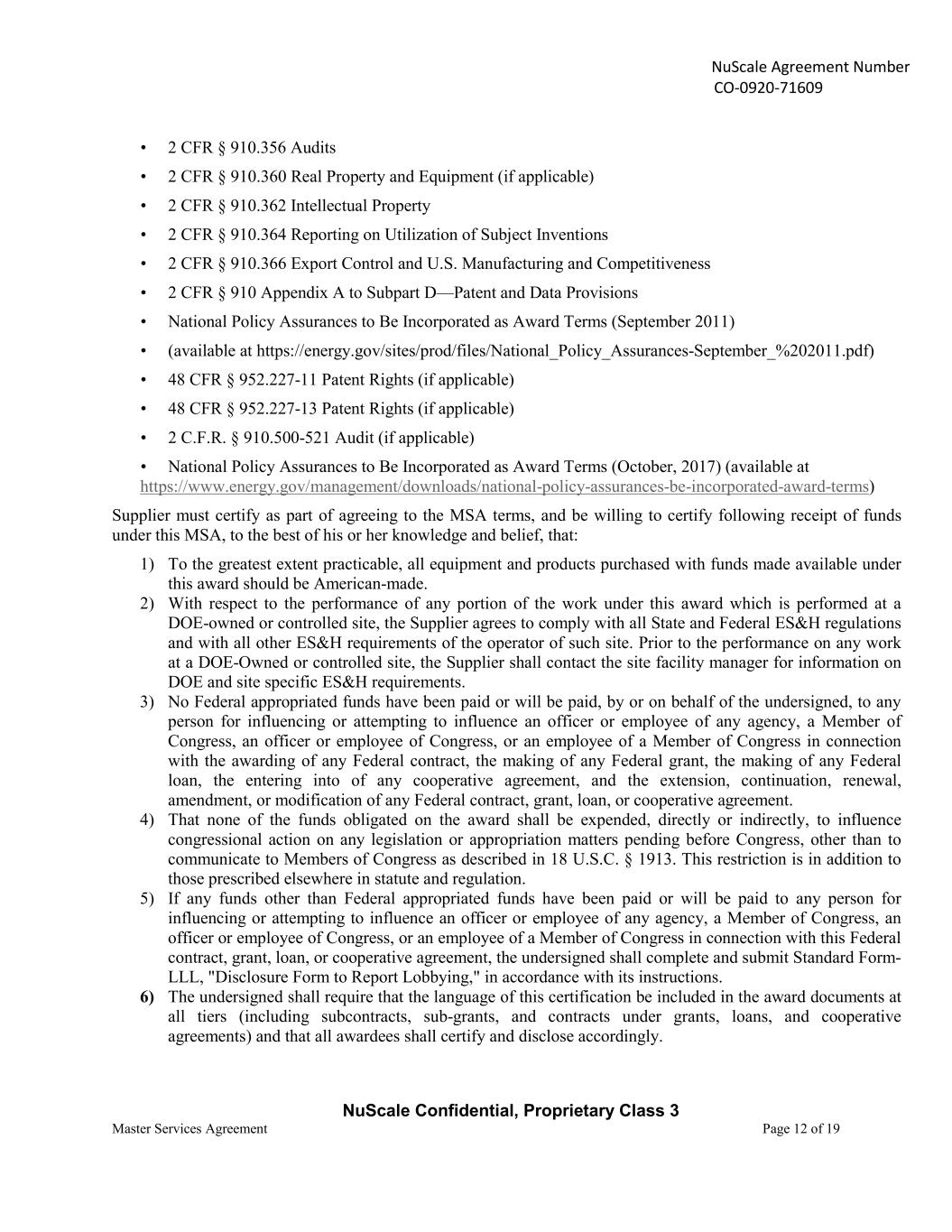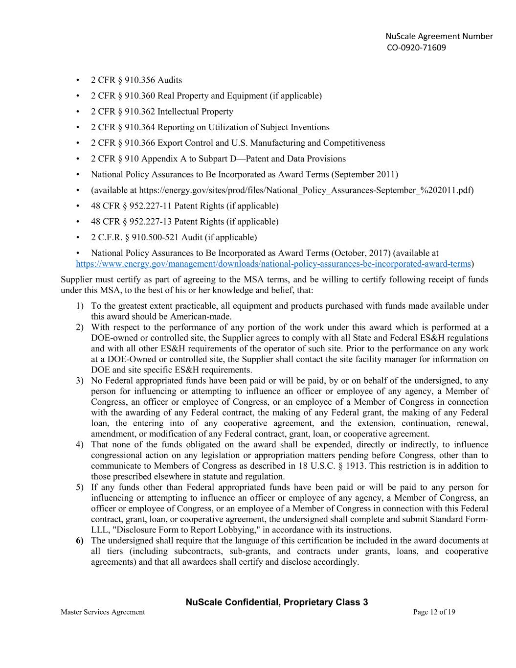In connection with DOE and UAMPS Award 8935, DOE designated NuScale as a subrecipient to UAMPS for the production of NPM 1, while classifying NuScale as a contractor or subcontractor for NPMs 2-12. As part of DOE’s classification of NuScale as a contractor or subcontractor for NPMs 2-12, DOE noted that should NuScale fail to initiate commercial operation of NPM 1, DOE has the right to demand repayment of the fees invoiced for NPMs 2-12.