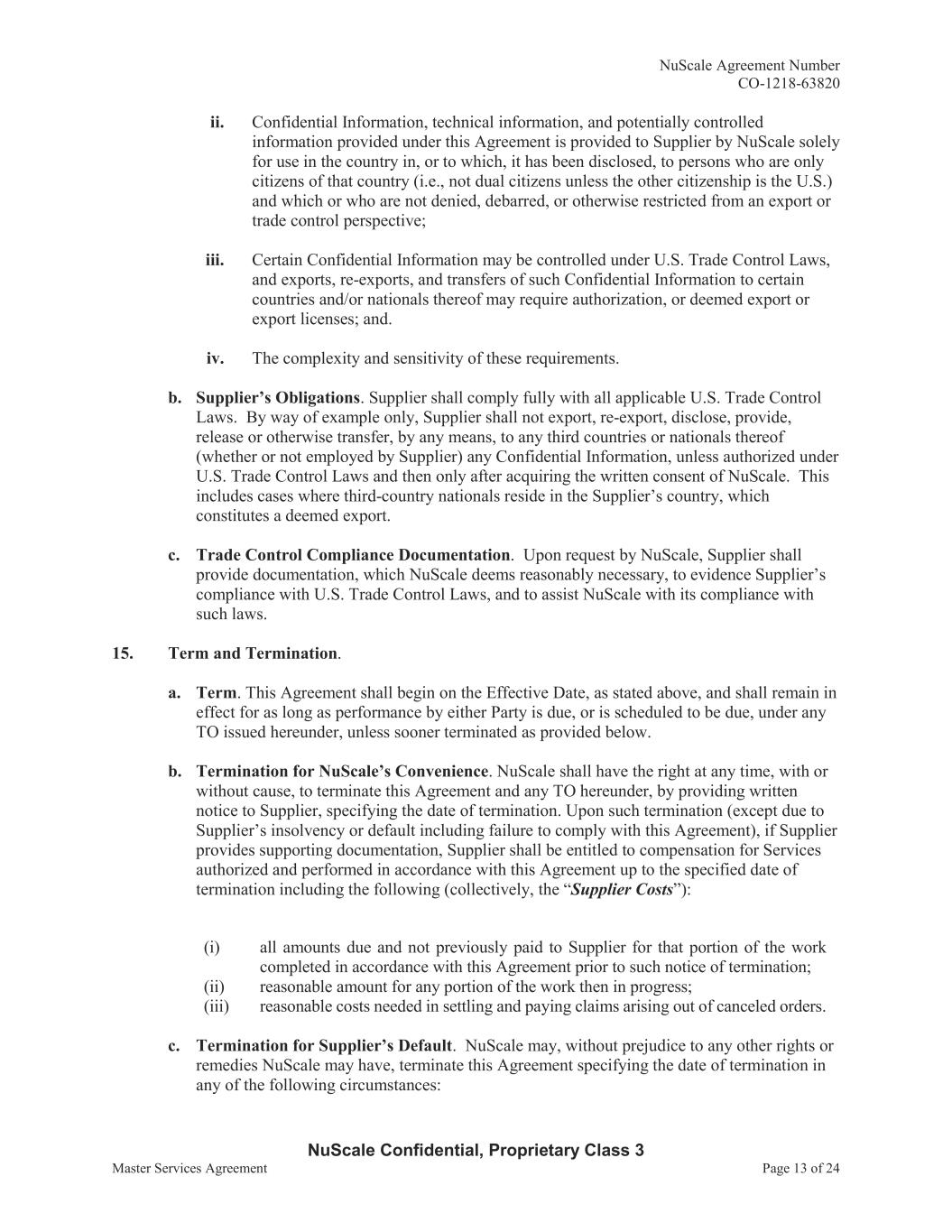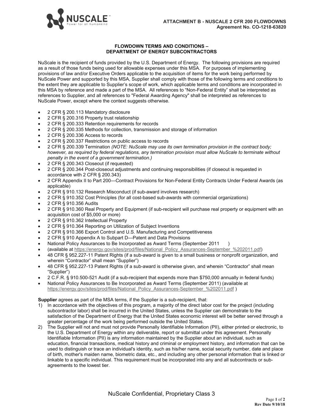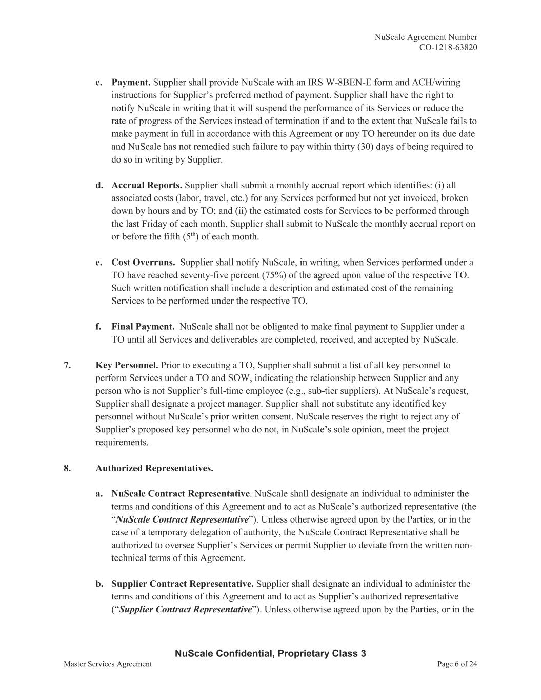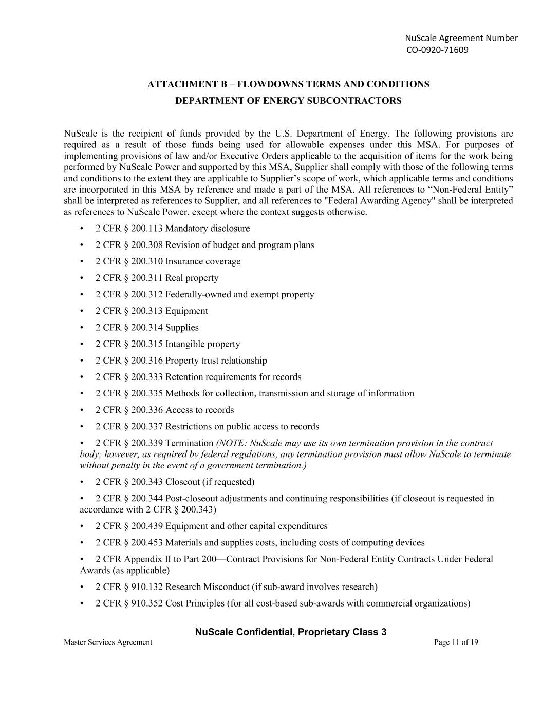 In connection with DOE and UAMPS Award 8935, DOE designated NuScale as a subrecipient to UAMPS for the production of NPM 1, while classifying NuScale as a contractor or subcontractor for NPMs 2-12. As part of DOE’s classification of NuScale as a contractor or subcontractor for NPMs 2-12, DOE noted that should NuScale fail to initiate commercial operation of NPM 1, DOE has the right to demand repayment of the fees invoiced for NPMs 2-12.