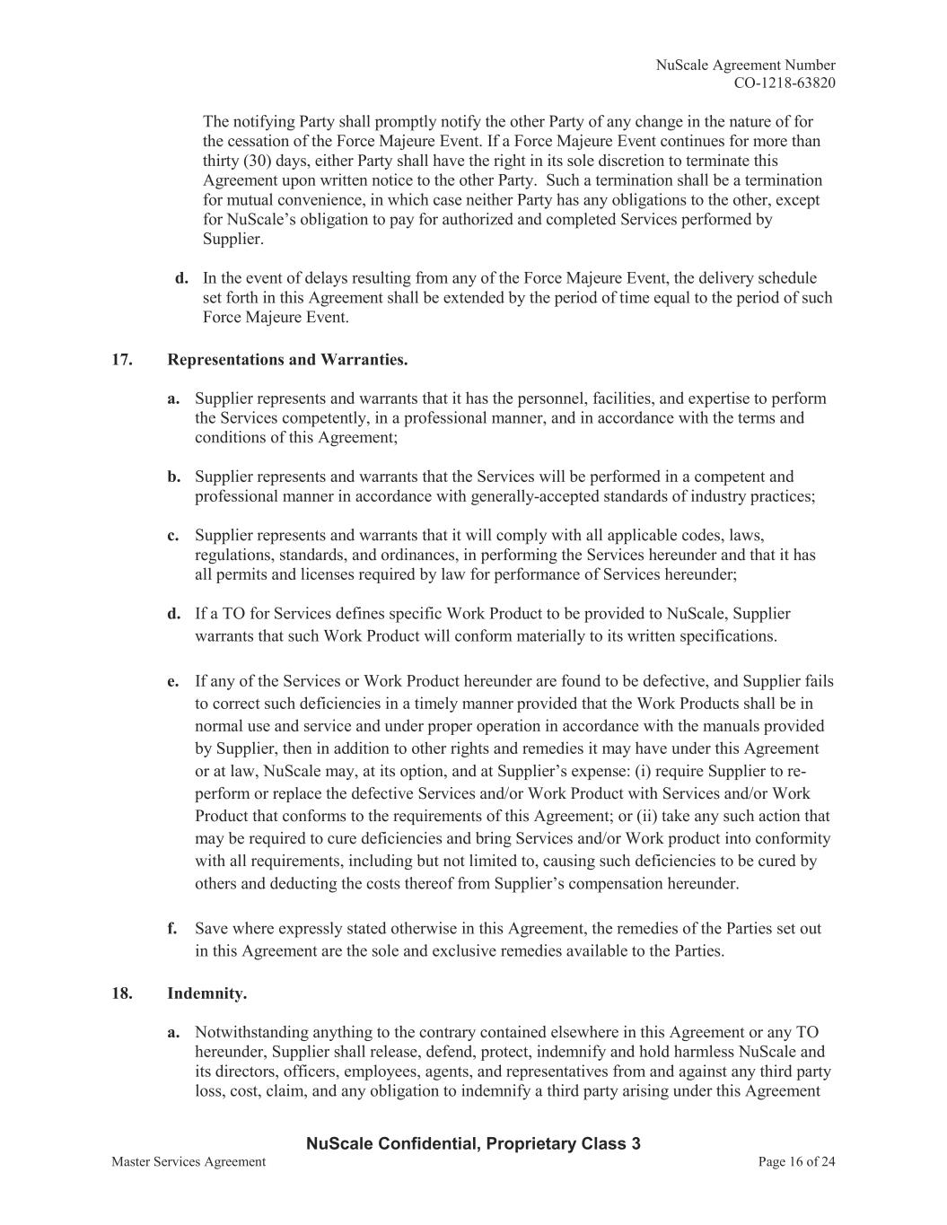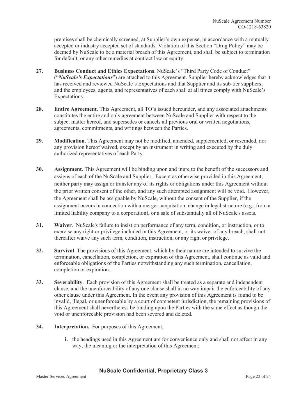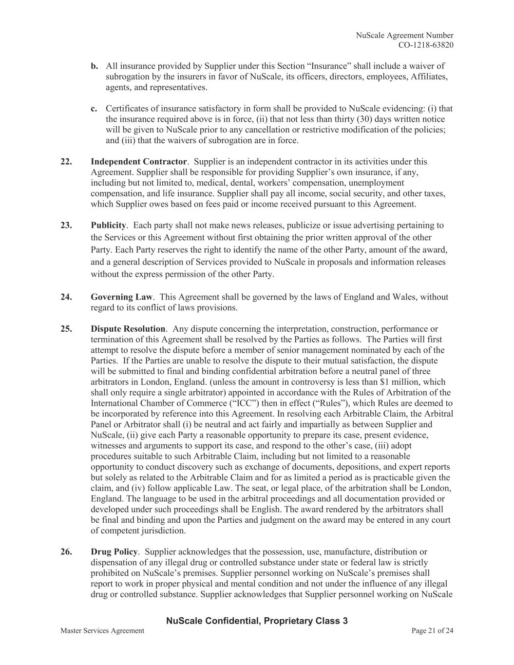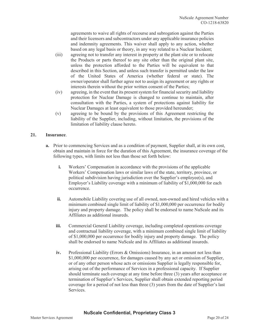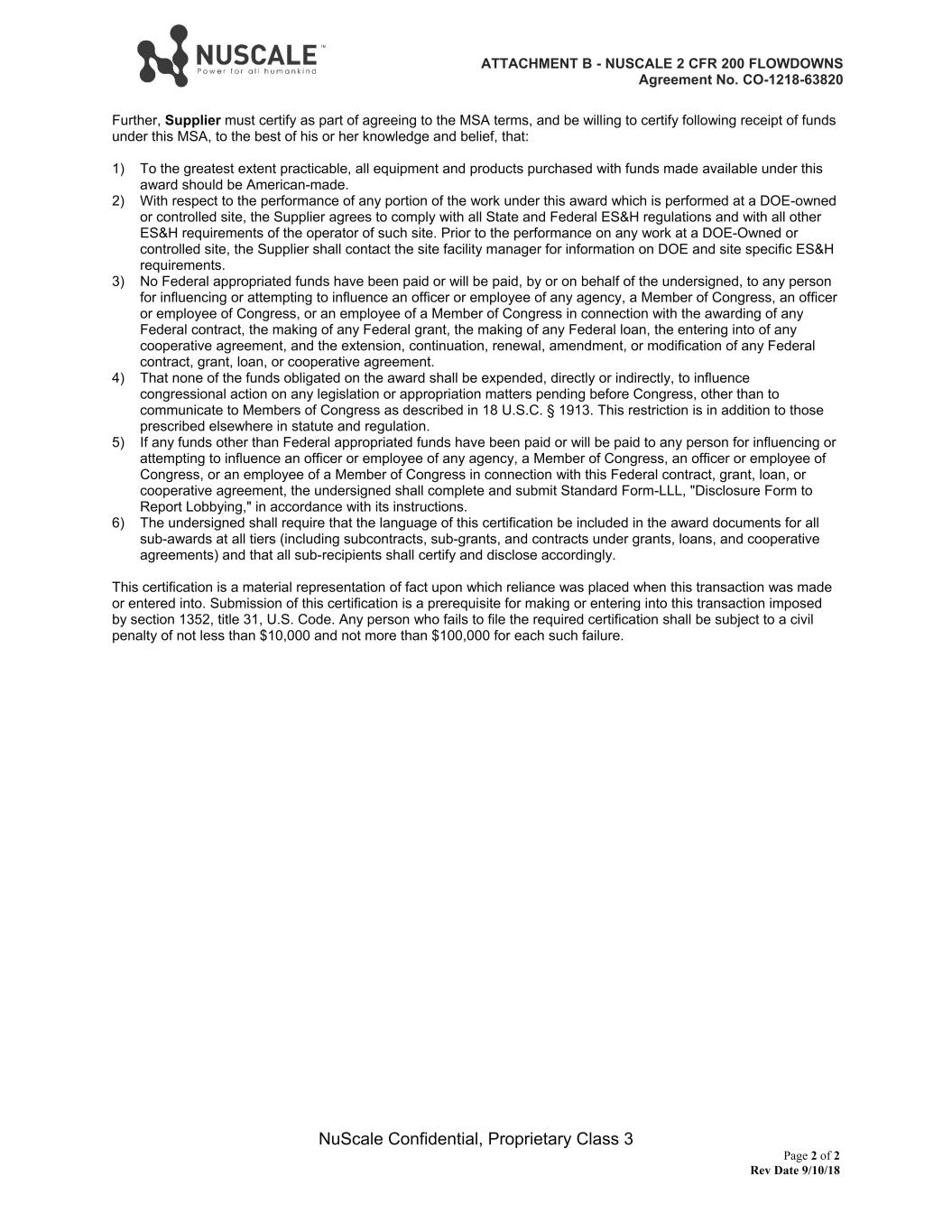 In connection with DOE and UAMPS Award 8935, DOE designated NuScale as a subrecipient to UAMPS for the production of NPM 1, while classifying NuScale as a contractor or subcontractor for NPMs 2-12. As part of DOE’s classification of NuScale as a contractor or subcontractor for NPMs 2-12, DOE noted that should NuScale fail to initiate commercial operation of NPM 1, DOE has the right to demand repayment of the fees invoiced for NPMs 2-12.