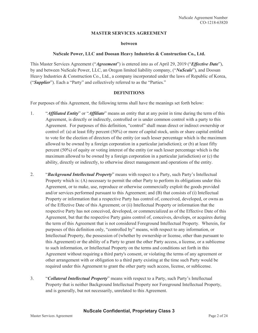• “LLM Agreement” refers to the Long Lead Material Reimbursement Agreement, dated February 28, 2023, entered into between NuScale LLC and CFPP LLC