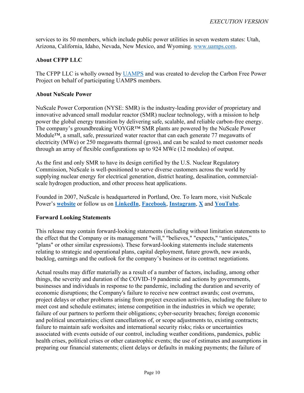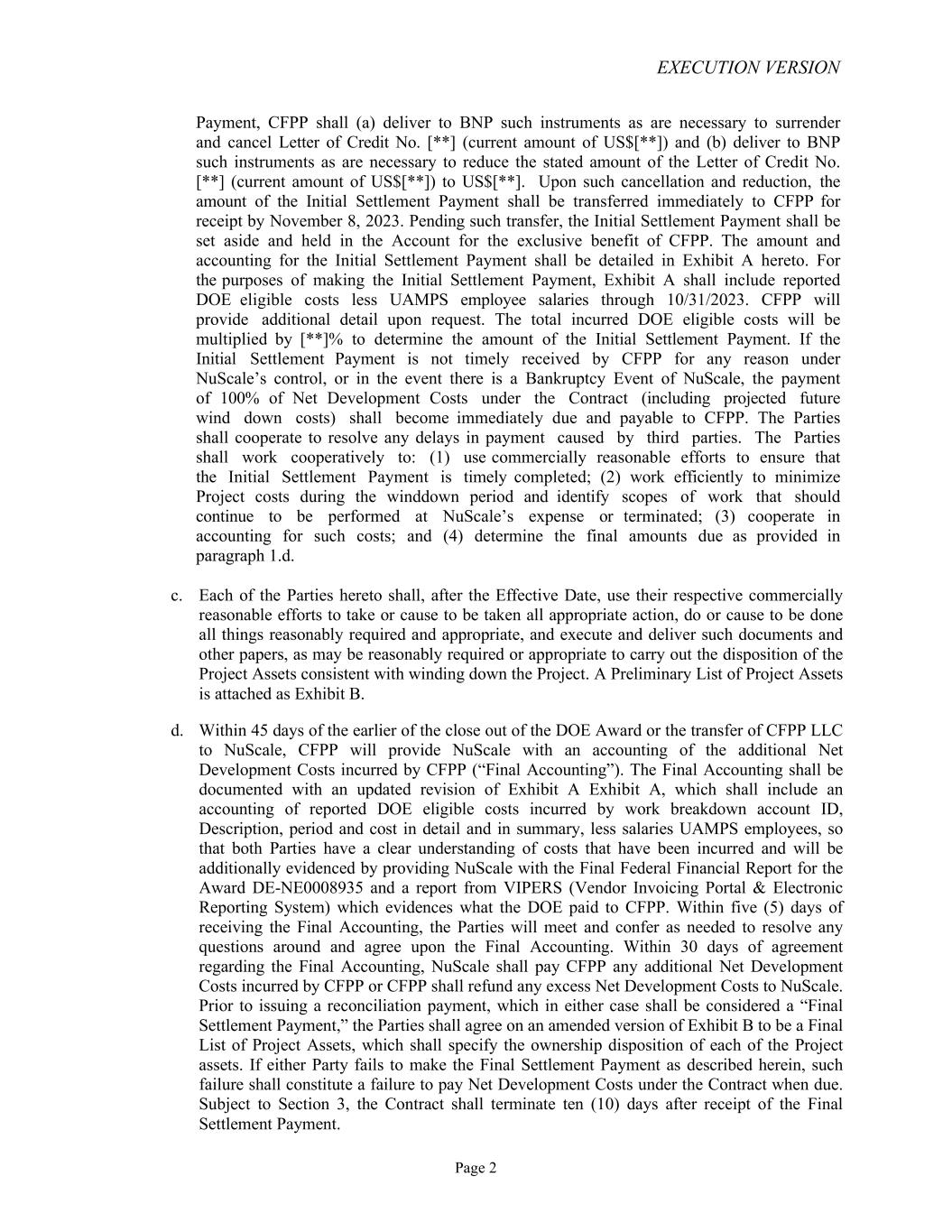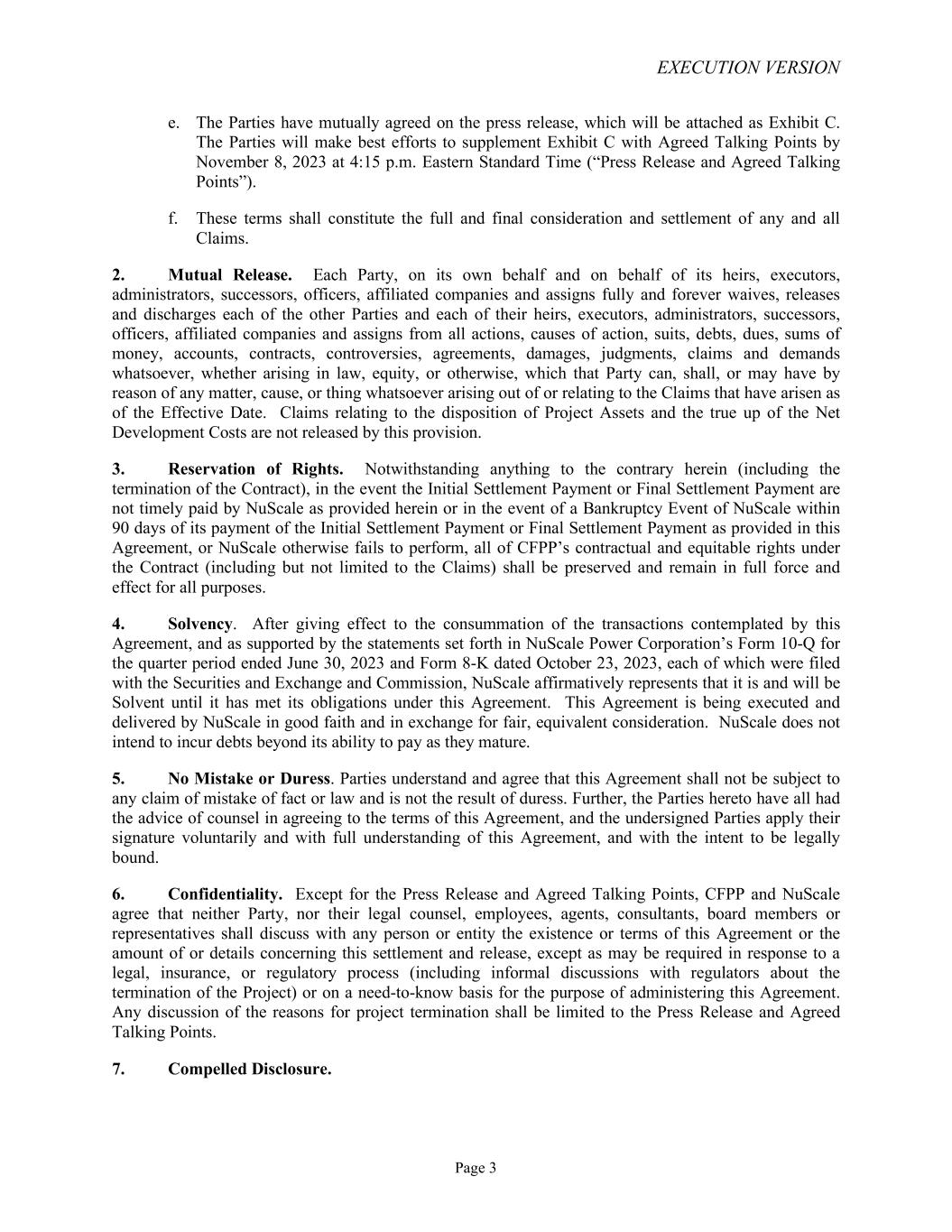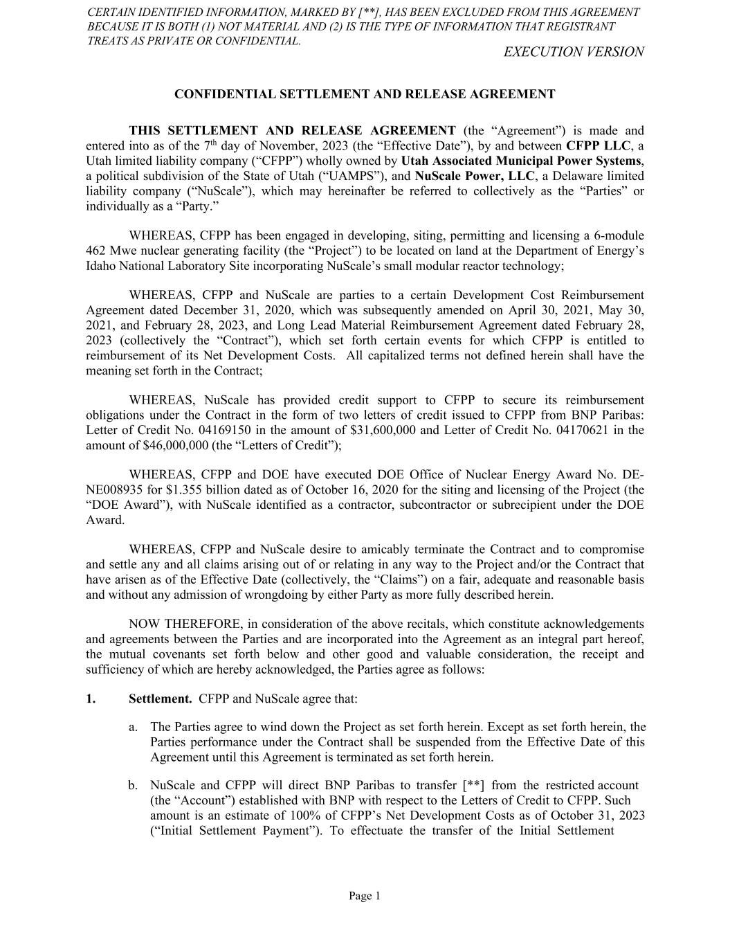 • “Release Agreement” refers to the Confidential Settlement and Release Agreement, dated November 7, 2023, entered into between NuScale Power, LLC and CFPP LLC