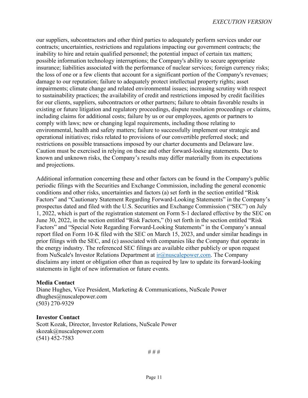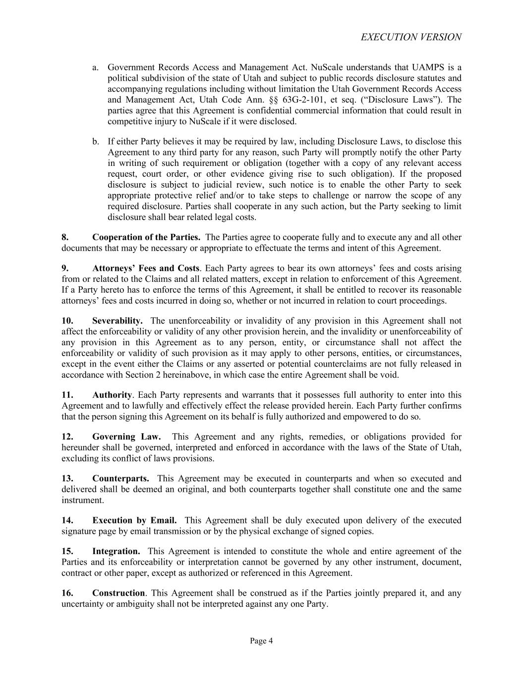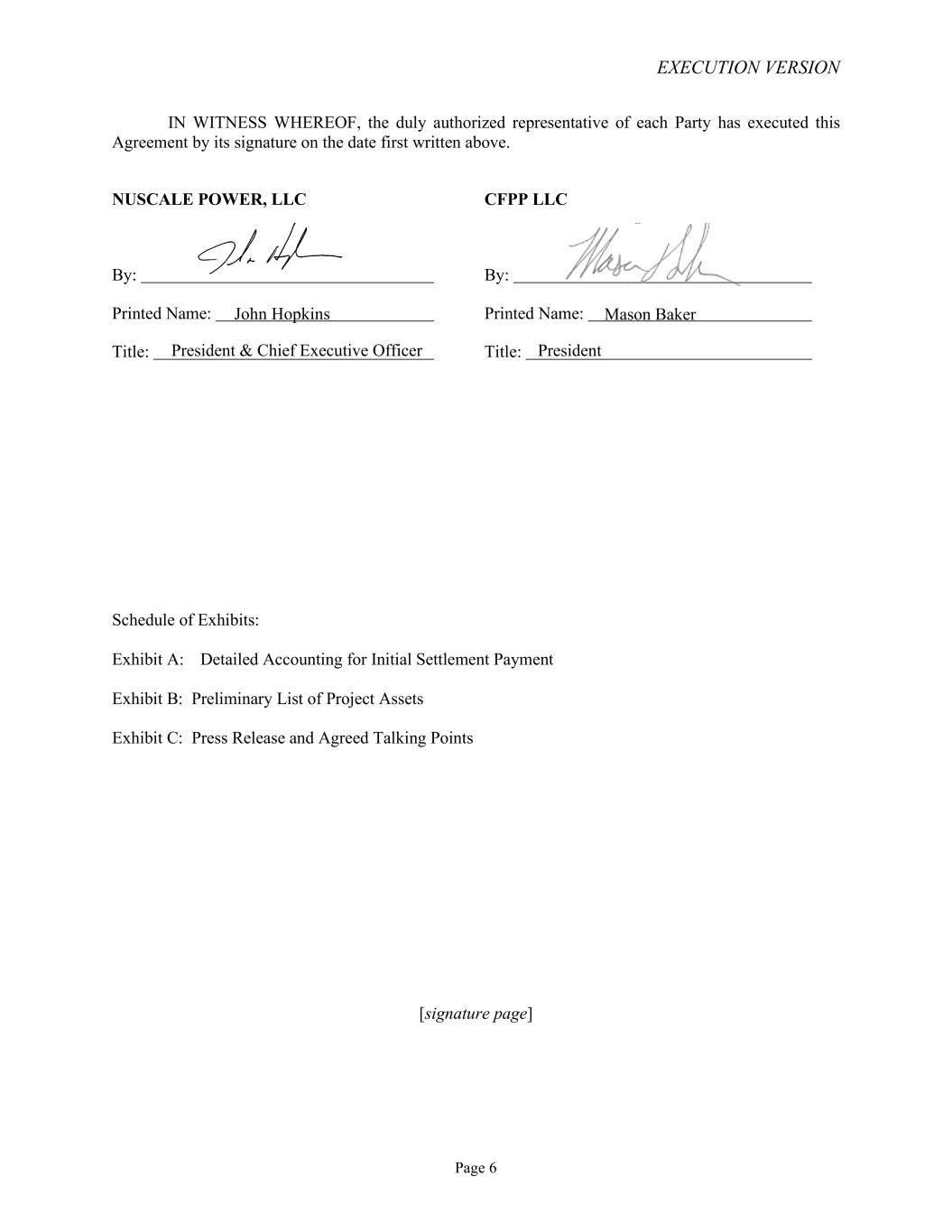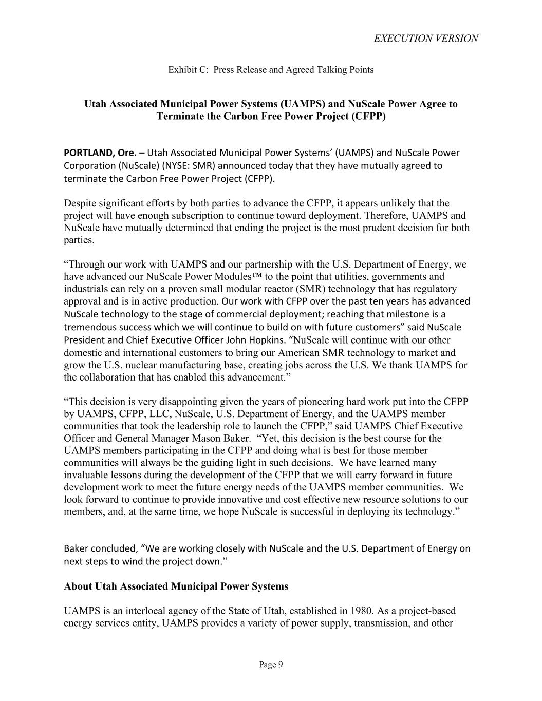 • “Release Agreement” refers to the Confidential Settlement and Release Agreement, dated November 7, 2023, entered into between NuScale Power, LLC and CFPP LLC