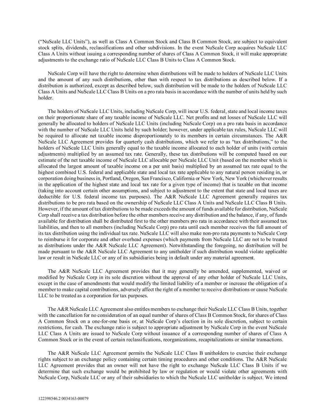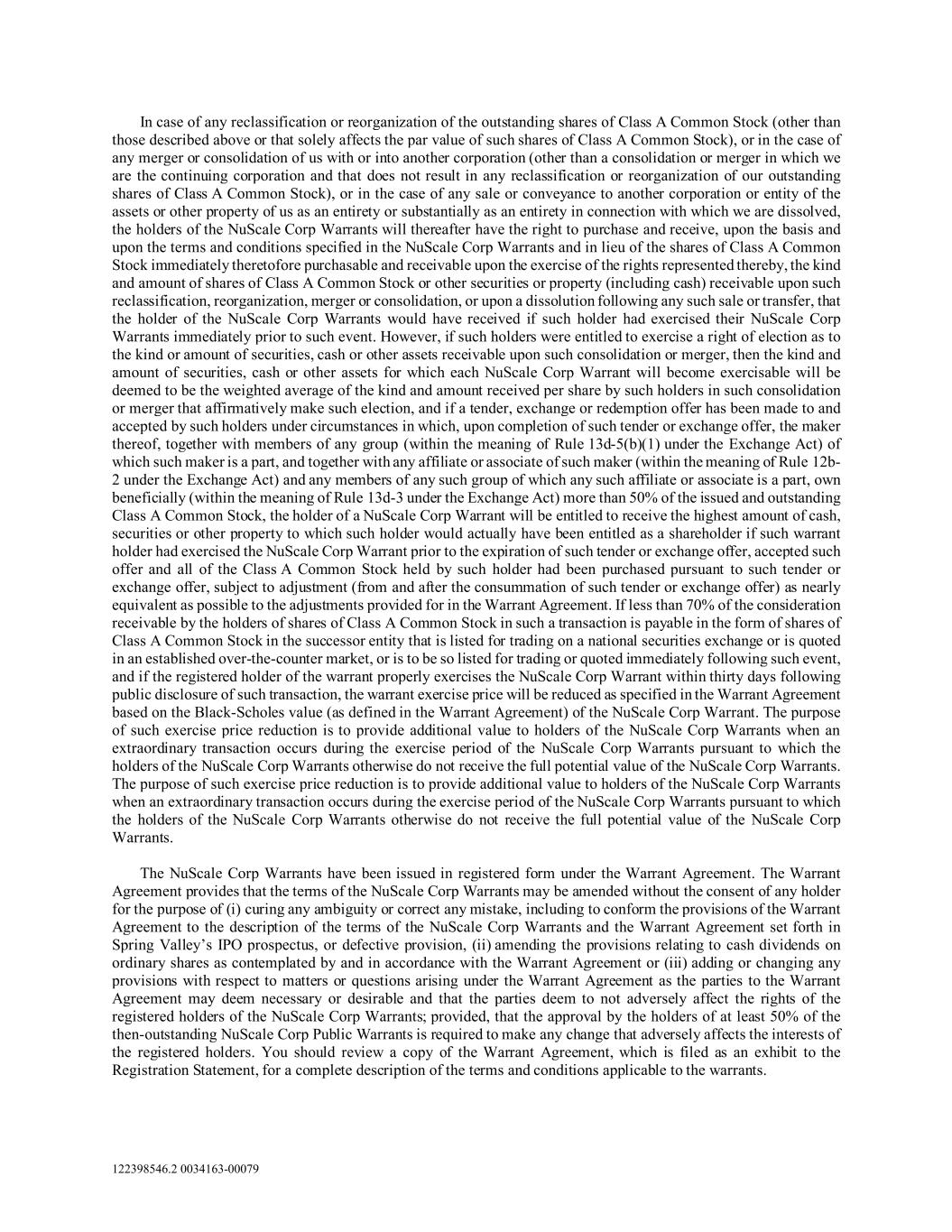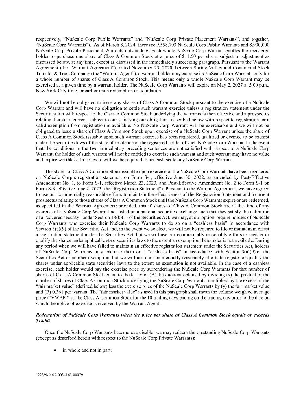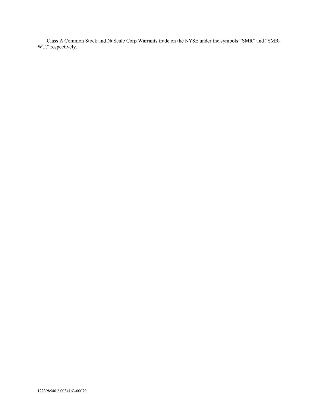 • “Class A common stock” refers to shares of Class A common stock, par value $0.0001 per share, of NuScale Power Corporation.