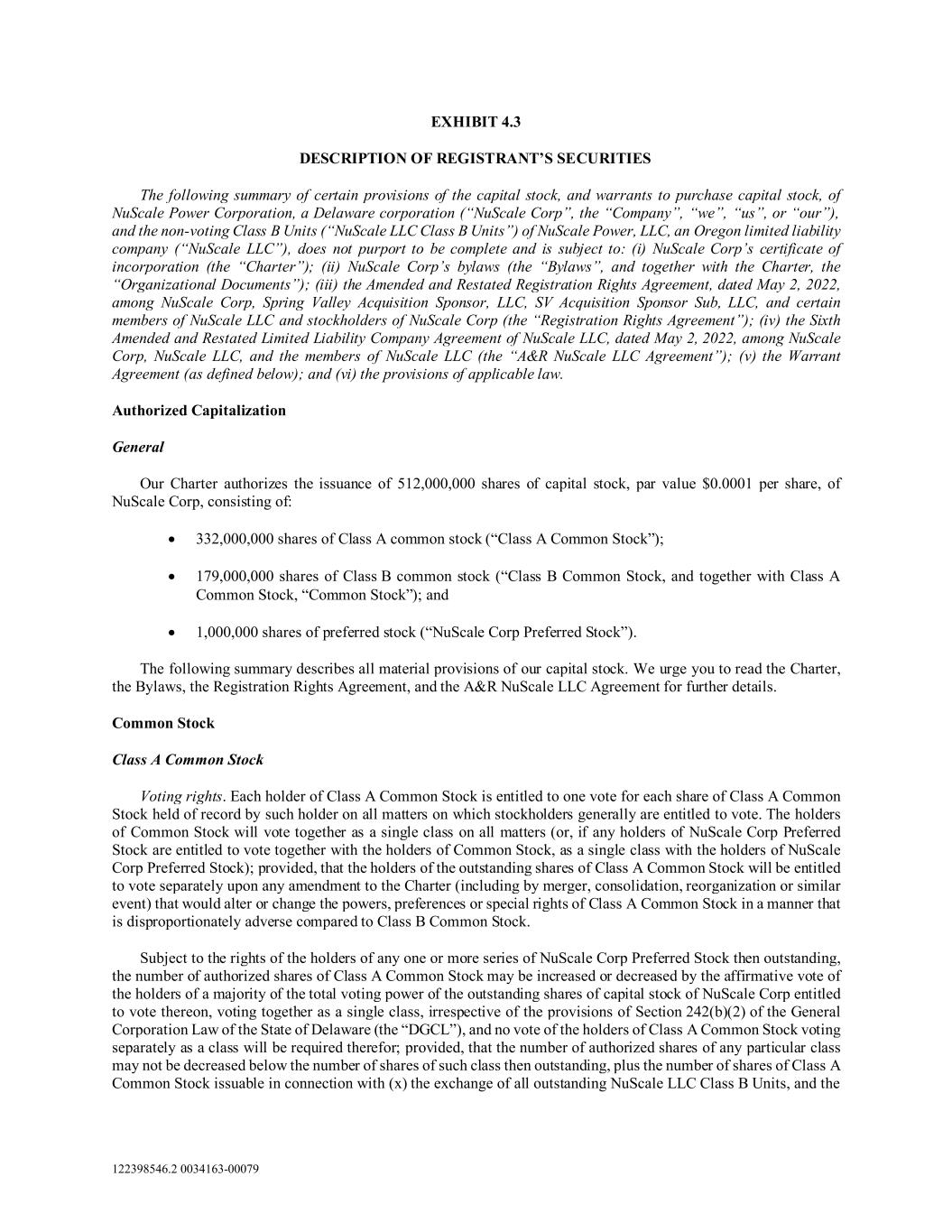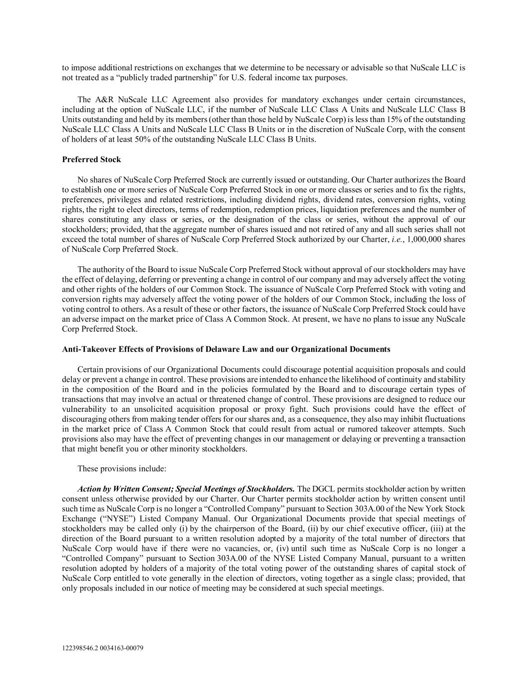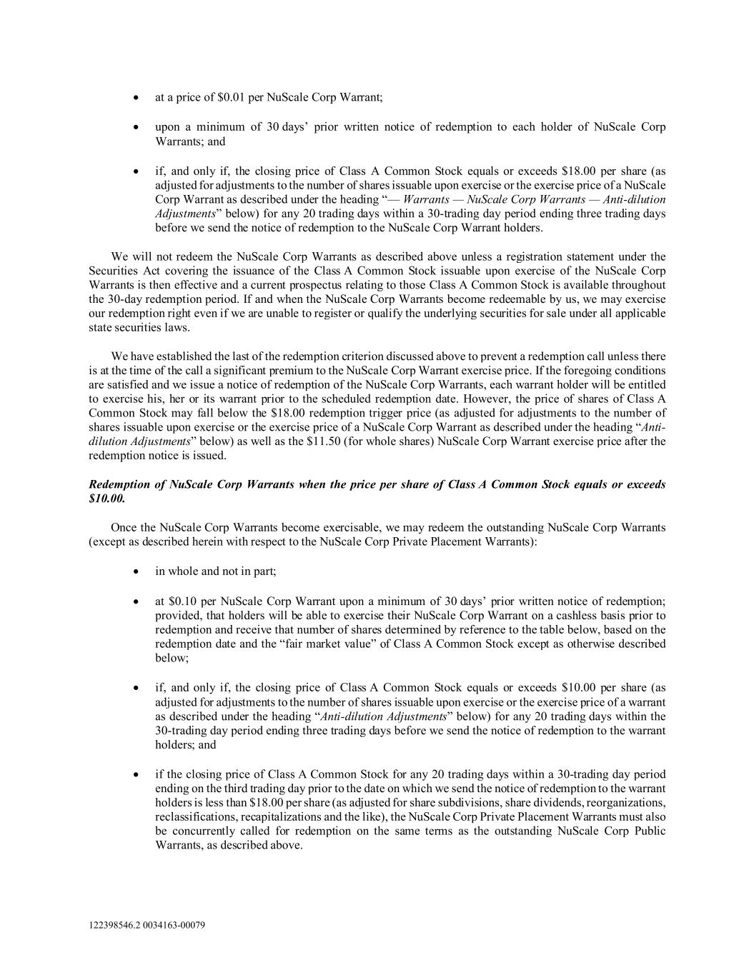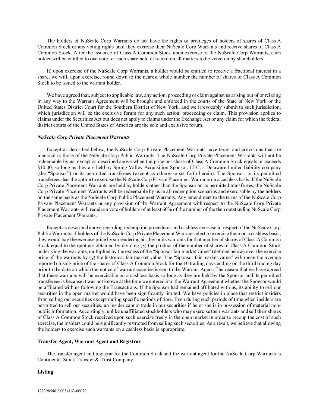 • “Class A common stock” refers to shares of Class A common stock, par value $0.0001 per share, of NuScale Power Corporation.