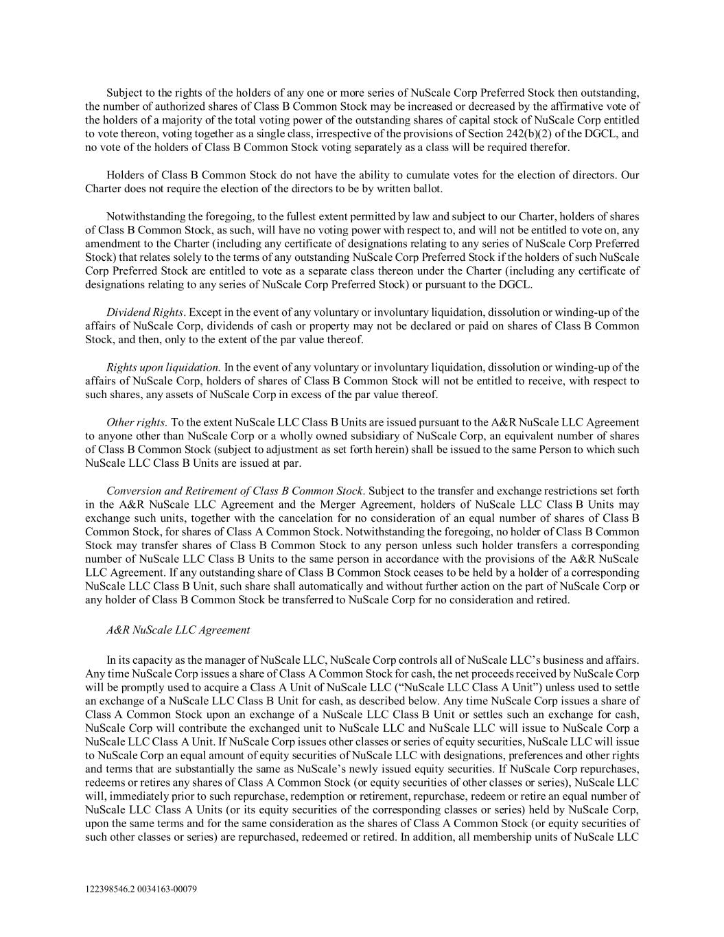 • “Class B common stock” refers to shares of Class B common stock, par value $0.0001 per share, of NuScale Power Corporation, which represents the right to one vote per share and carries no economic rights.